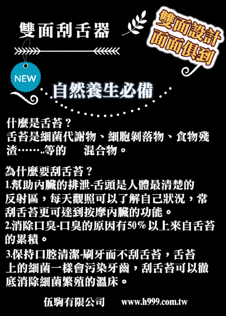 為了讓更多人能嚐試開始使用刮舌器,我們開發了新款的刮舌器,除了有新穎的造型外、握把更符合人體工學、雙刮面的設計,除了能刮除舌苔也可以按摩舌頭,讓使用的選擇更多元。